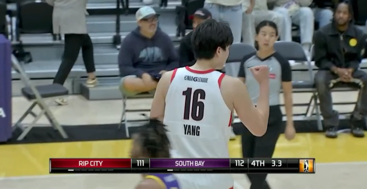 第三节,杨瀚森单打突破杀到禁区上篮单臂劈扣,反击中再次扣篮得分;末节杨瀚森自投自抢补篮得分,关键时刻杨瀚森连中两记三分——比赛还剩17秒命中三分,终场前3.3秒再中续命三分,此时瀚森激动握拳庆祝;不过混音最后一攻,辛森投丢绝杀,混音2分惜败湖人。